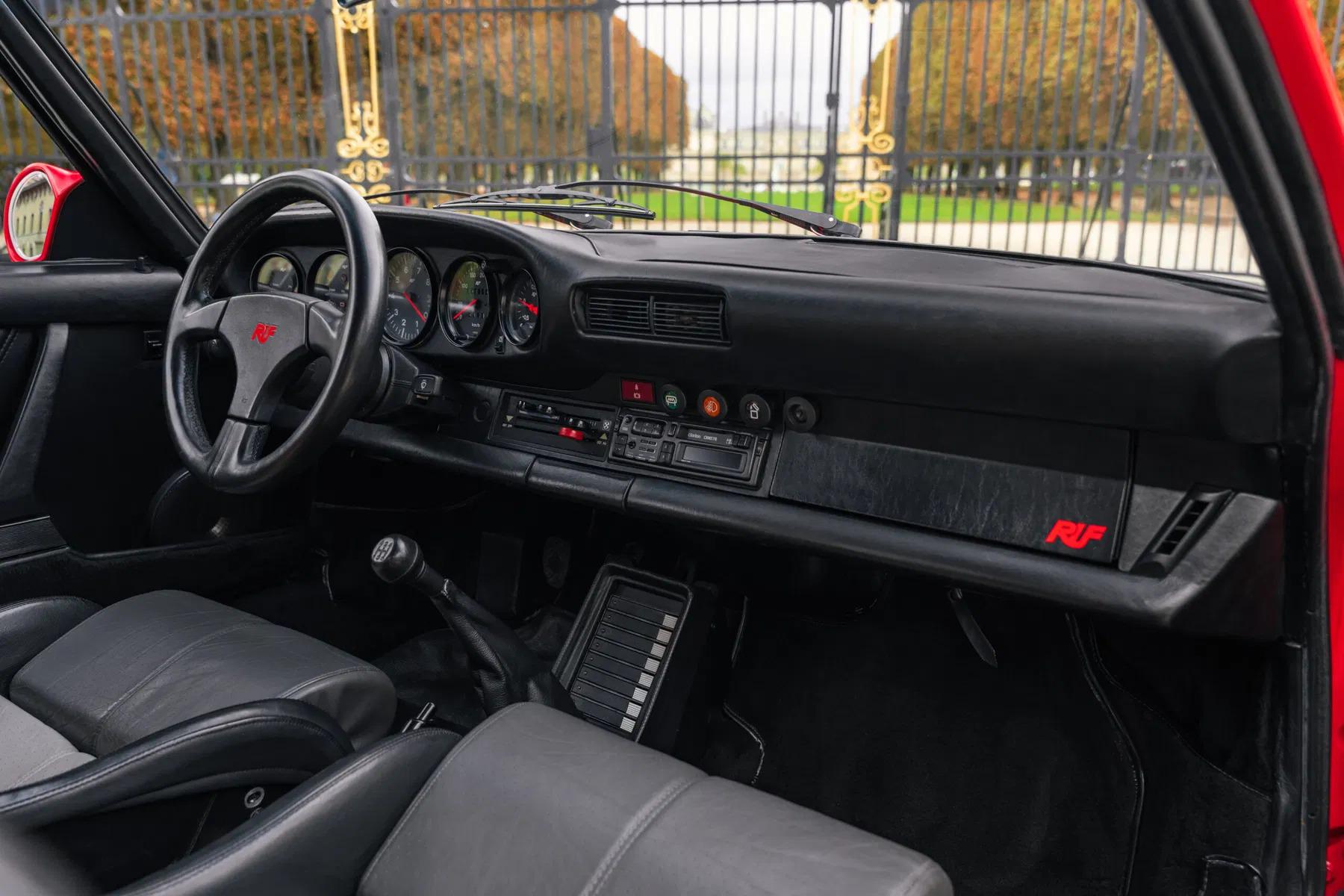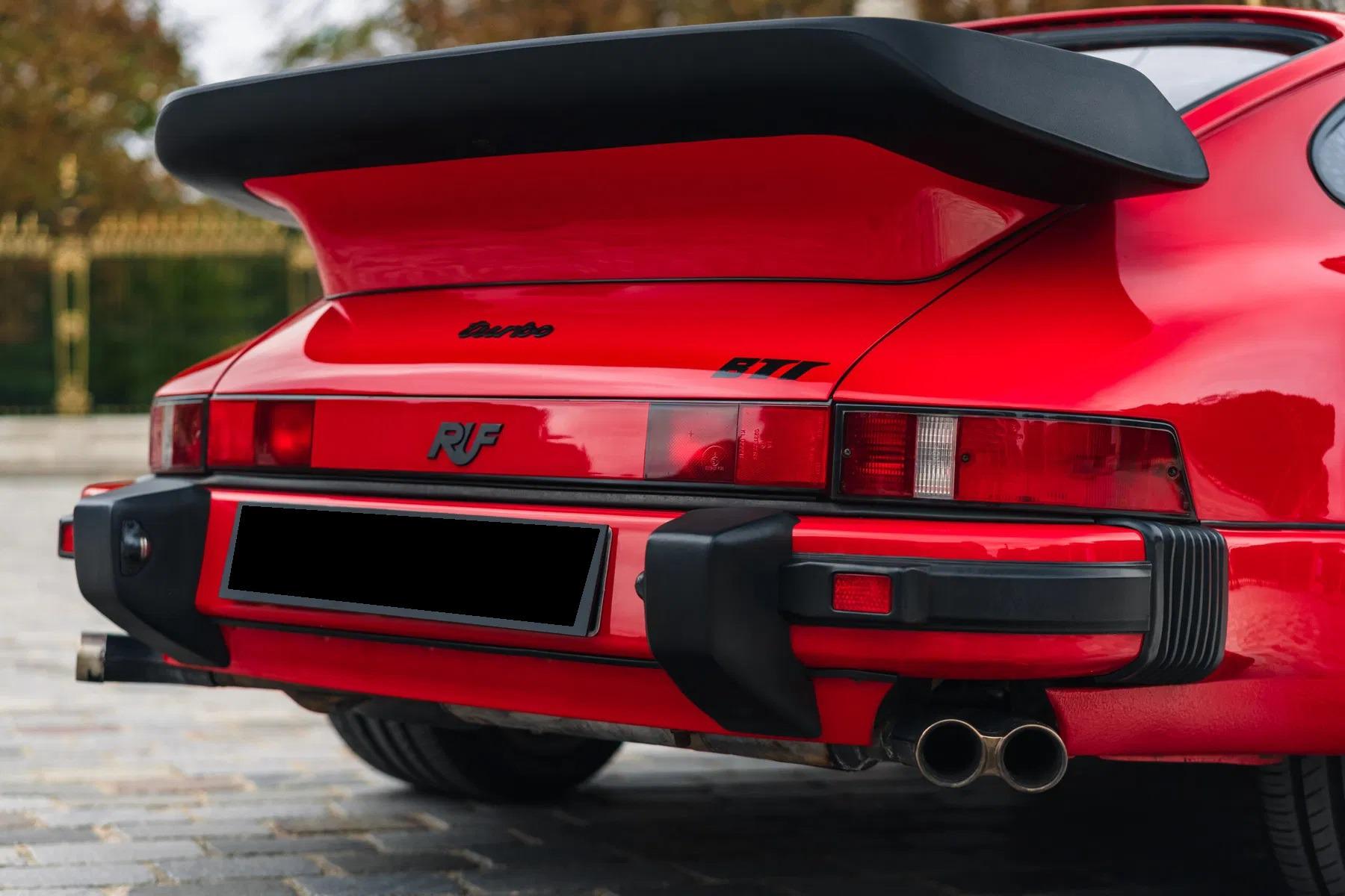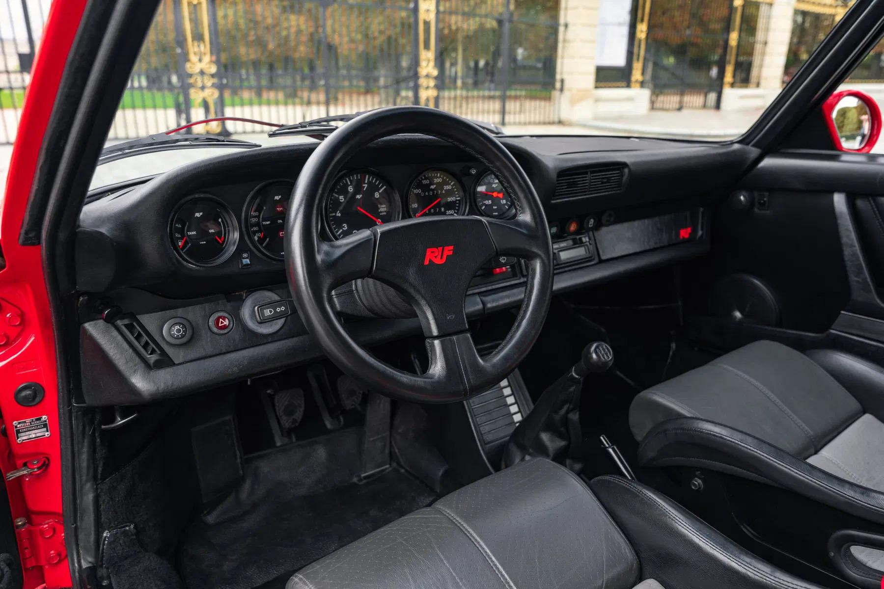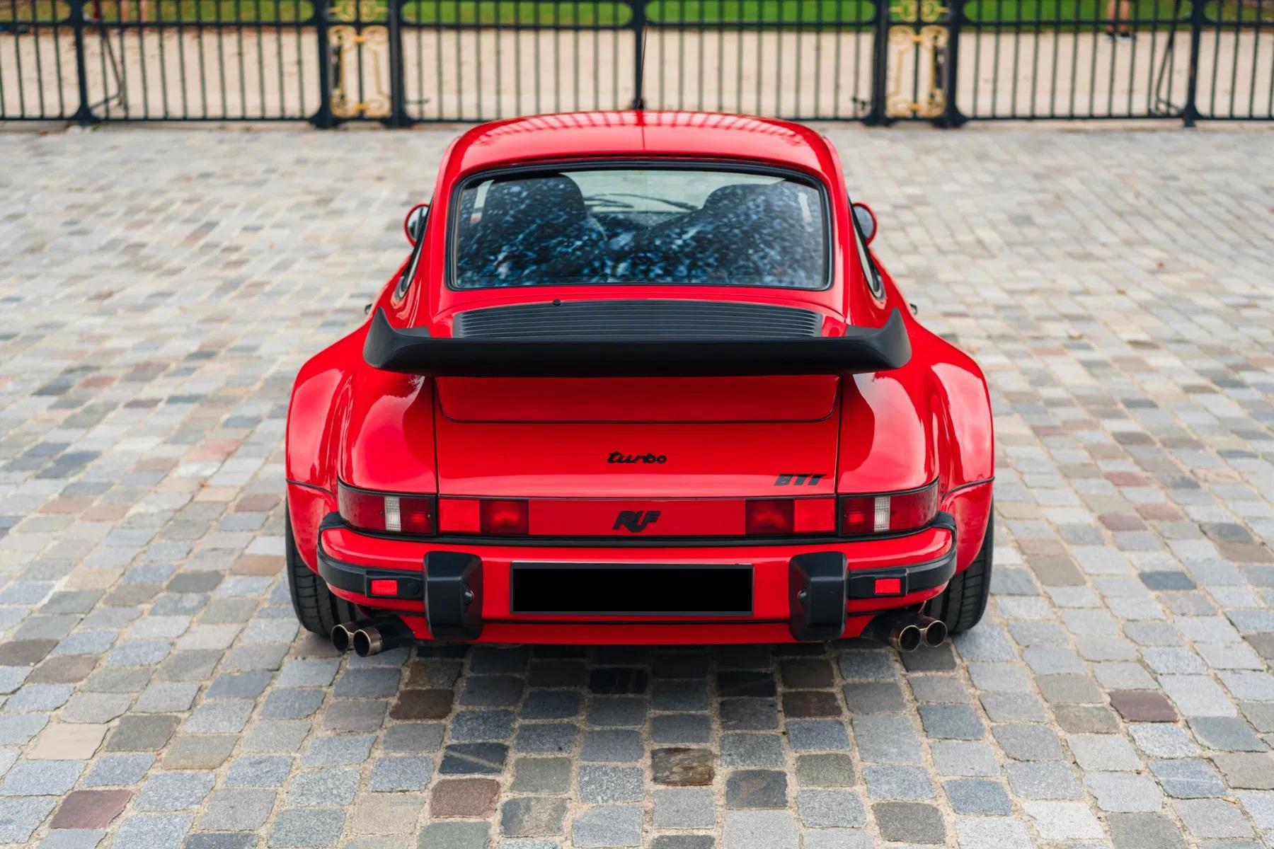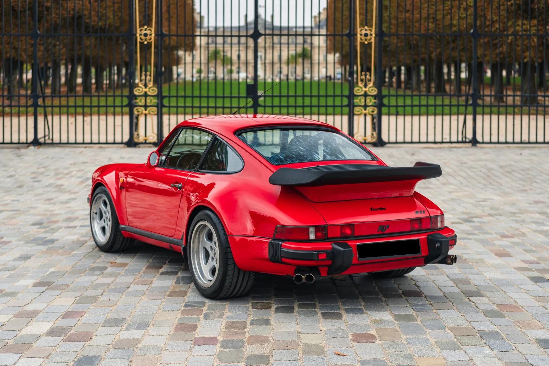 The BTR marked the beginning of RUF as a manufacturer in its own right, establishing itself as the most highly regarded of all the Porsche tuning companies. The BTR was inspired by the FIA Group B regulations of the time, utilizing a 930 Turbo as a basis to compete with the fastest products from Ferrari, Lamborghini and Porsche itself. The BTR was routinely regarded as the fastest accelerating road car at the time. The BTR utilized a 930 turbo engine bored to 3.4 liters and then fitted with Mahle pistons, RUF 935-type camshafts, RUF intercooler and a larger KKK turbo. This resulted in a power output of 374 bhp. Various other modifications to the car included enhancements to the body and interior, RUF sport steering wheel, RUF gauges, RUF suspension, RUF specific 17-inch wheels, RUF front spoiler with oil-cooler, Fog lights, RUF quad-pipe sport muffler, and a RUF five-speed gearbox. Upgraded to RUF BTR II Specification by the Official RUF Importer for Switzerland in 1992.