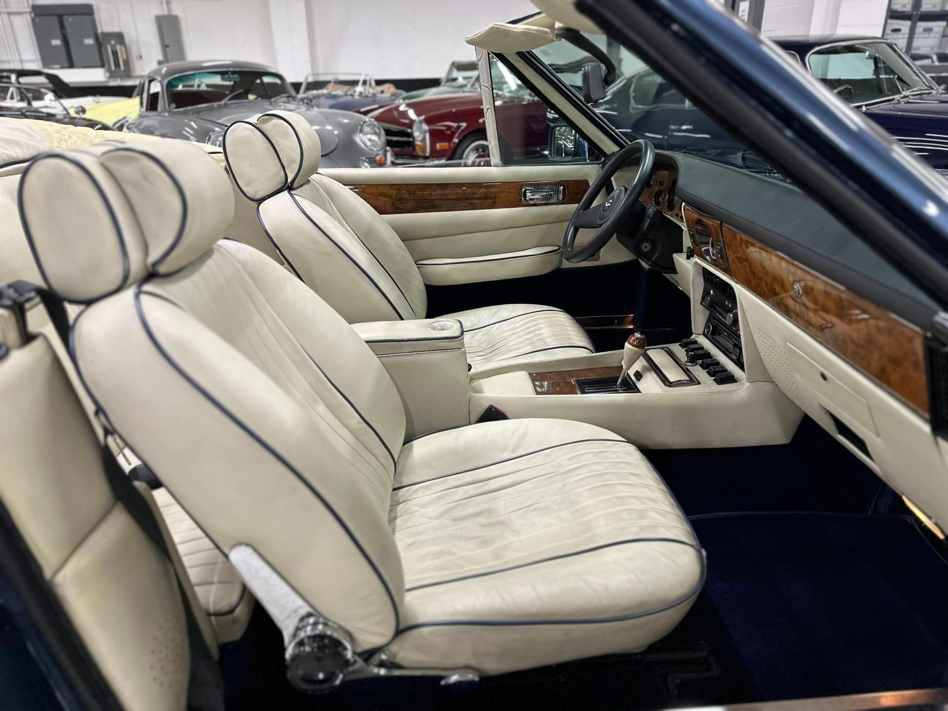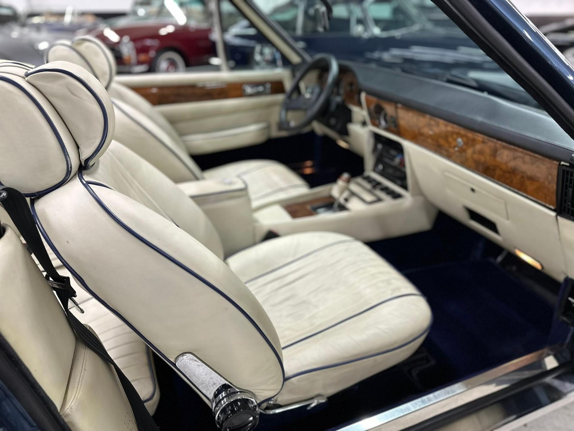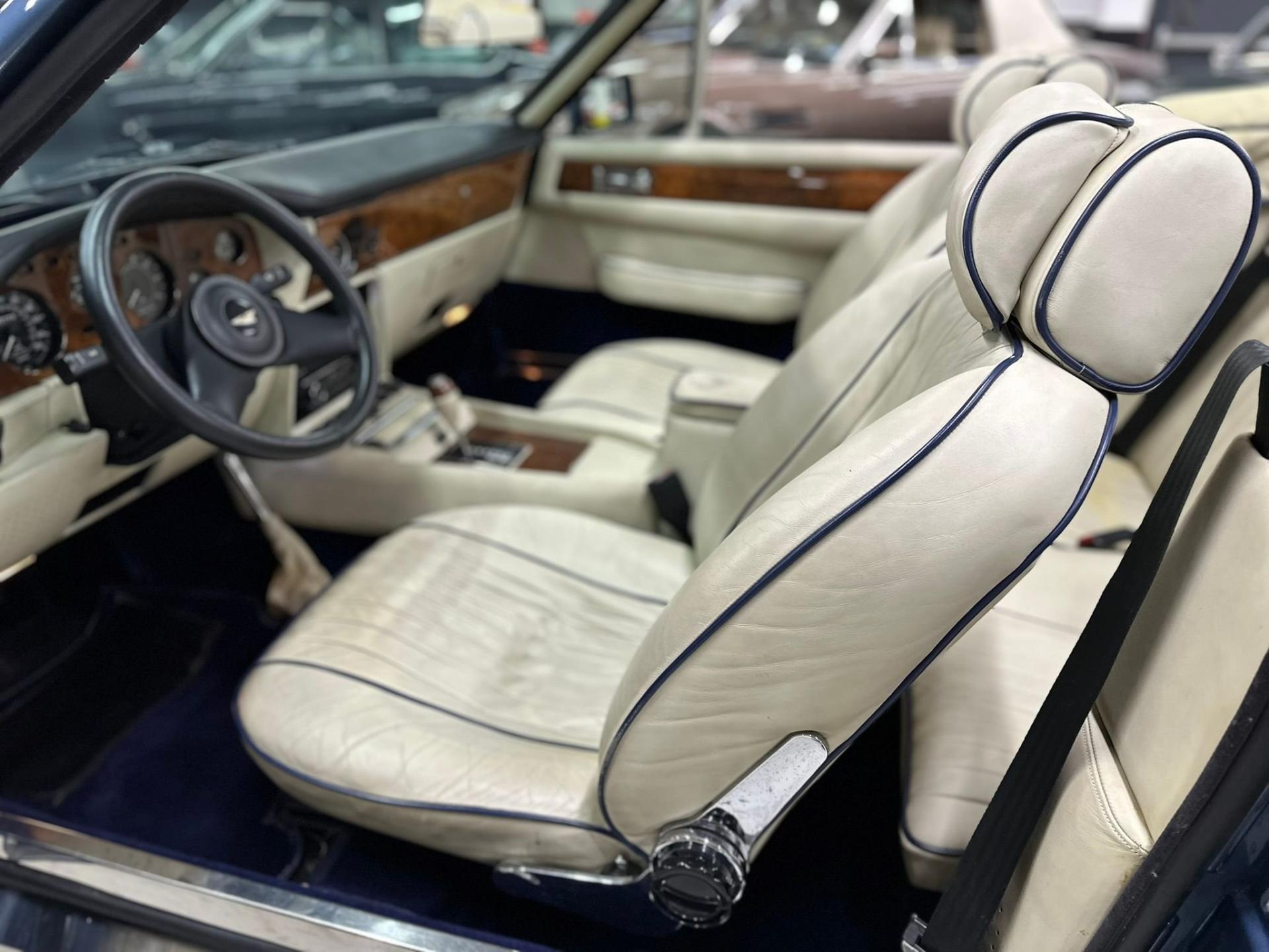 Completed at the Newport Pagnell works in June of 1987, this V8 Volante was sold new to Andrew Terrand Ltd. As judged by the superb condition today, this Aston has always enjoyed proper care and maintenance in correct and loving ownership. The V8 was then sold in 1991 to a Mr. John Pease. Showing just 13,500 miles in 1997, the V8 was sold to its 3rd owner, Mr. Charles William Cayzar of Chipping Norton. Service records for this V8 date back to 1997 and Mr. Cayzars impeccable ownership. All service work was performed by Oselli, Nicholas Mee & Co and other UK Aston Martin specialists. Some updates carried out during recent restoration include an engine rebuild and uprating to 5.8 liter Big Bore specifications, rebuild of the gearbox, new torque converter, upgraded Koni shocks with handling kit-anti-roll bars, Vantage front air dam, 16-inch Ronal wheels and new exhaust system.