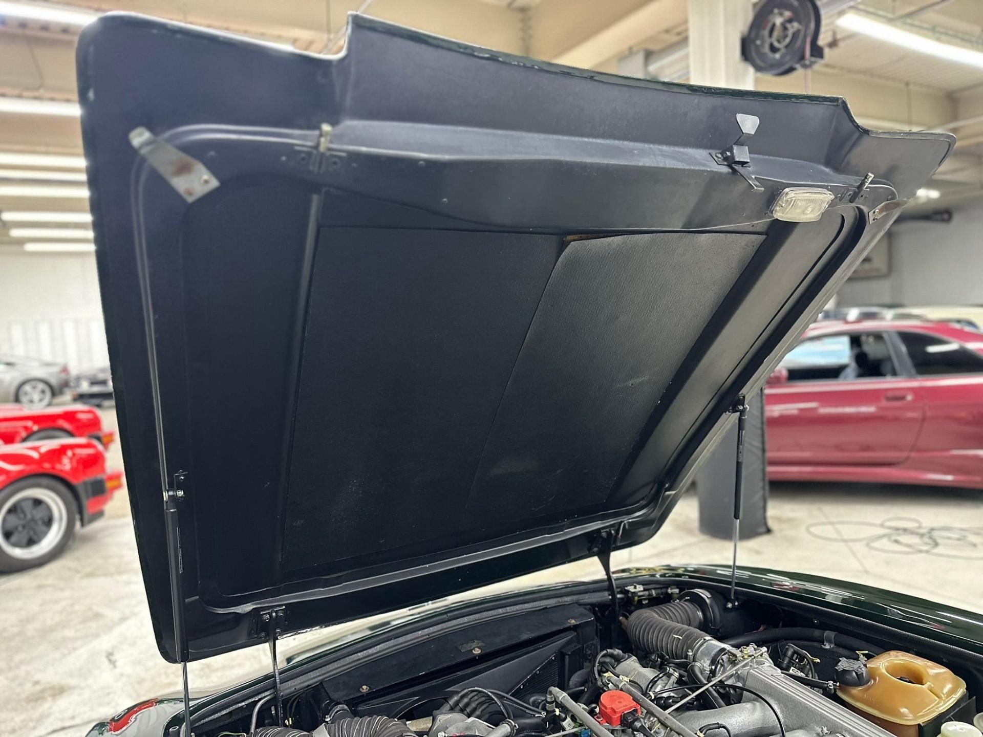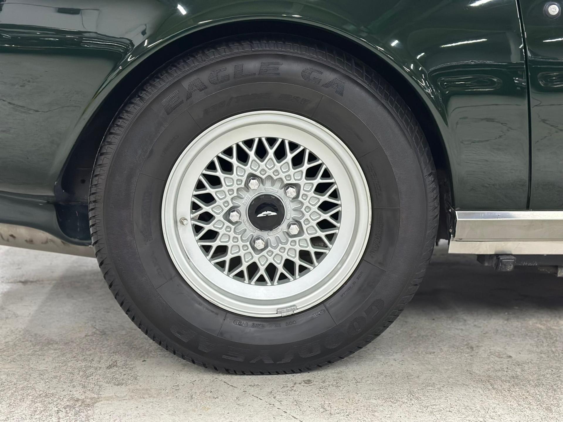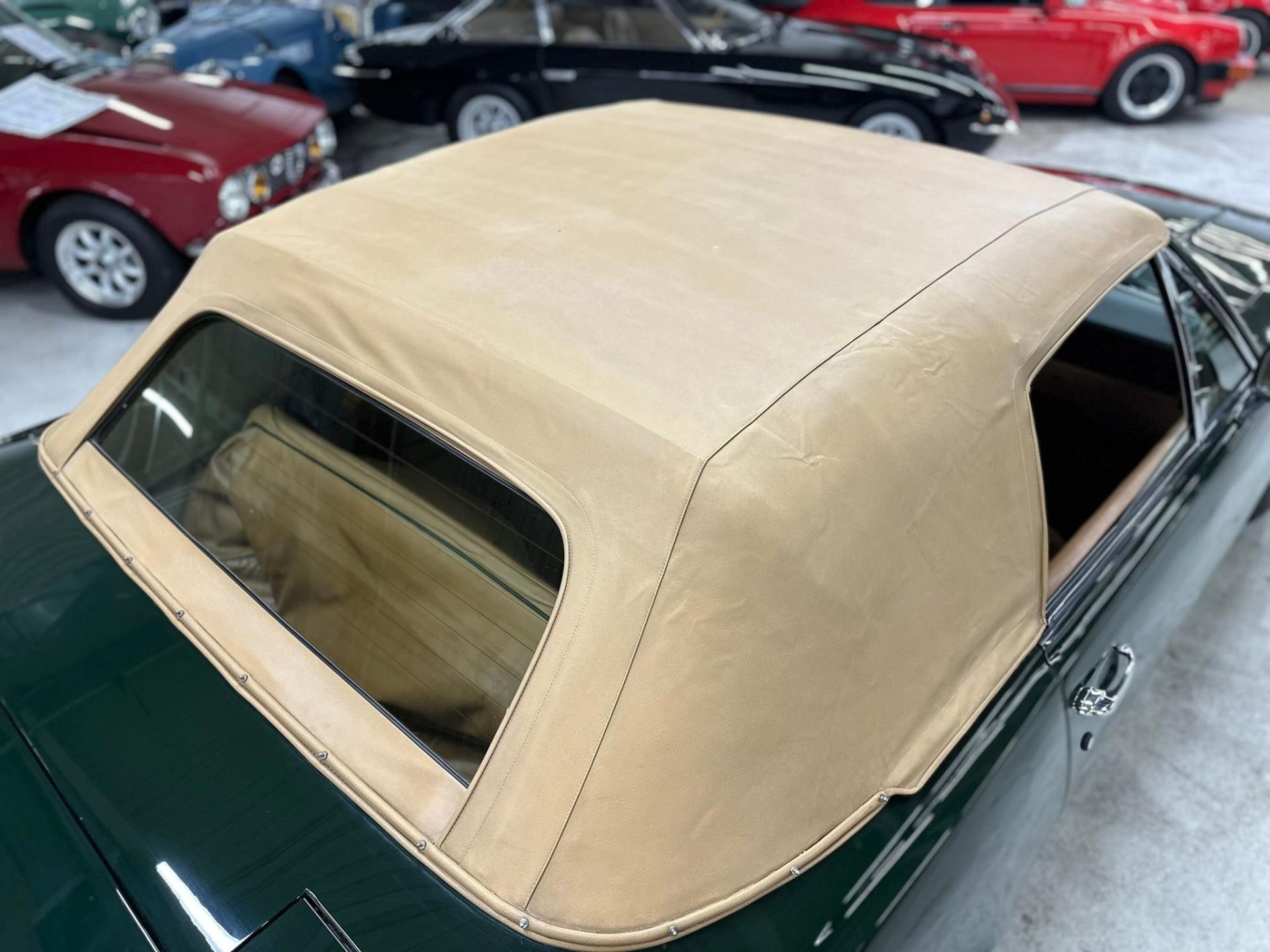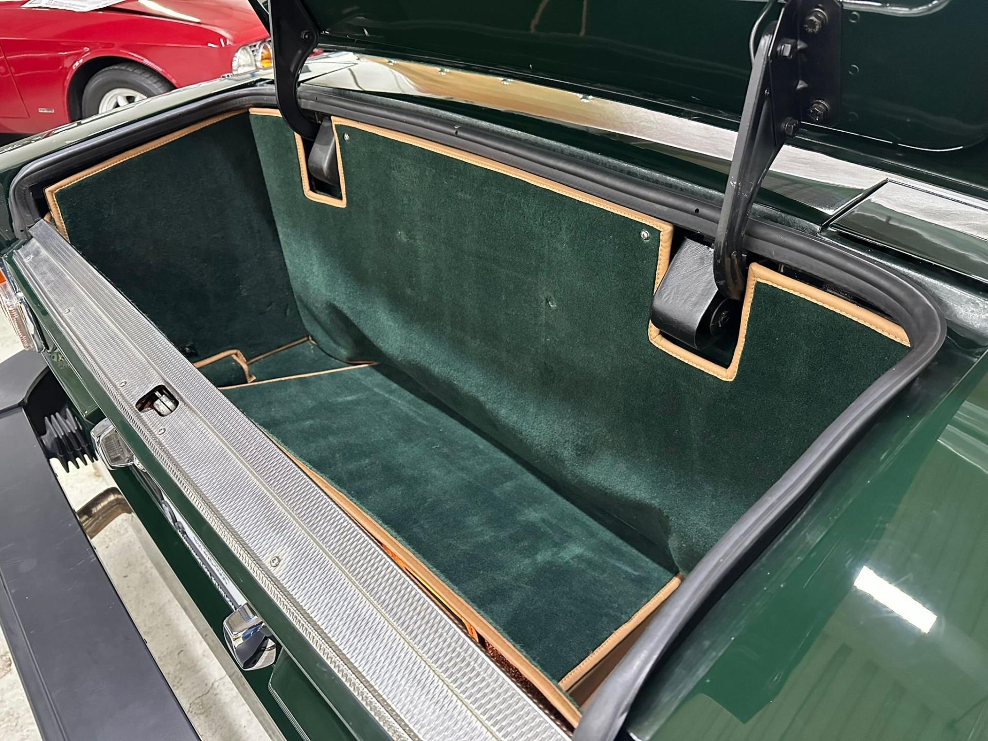 --British Racing Green with Tan leather interior piped in Green, Green Wilton Wool carpeting and Tan everflex convertible top, 23,000 miles from new, Fuel Injected 5.3 Liter V8 Engine, 3-Speed automatic transmission, POW front spoiler, PoW optional Nardi wood steering wheel and modern Bluetooth stereo head unit.