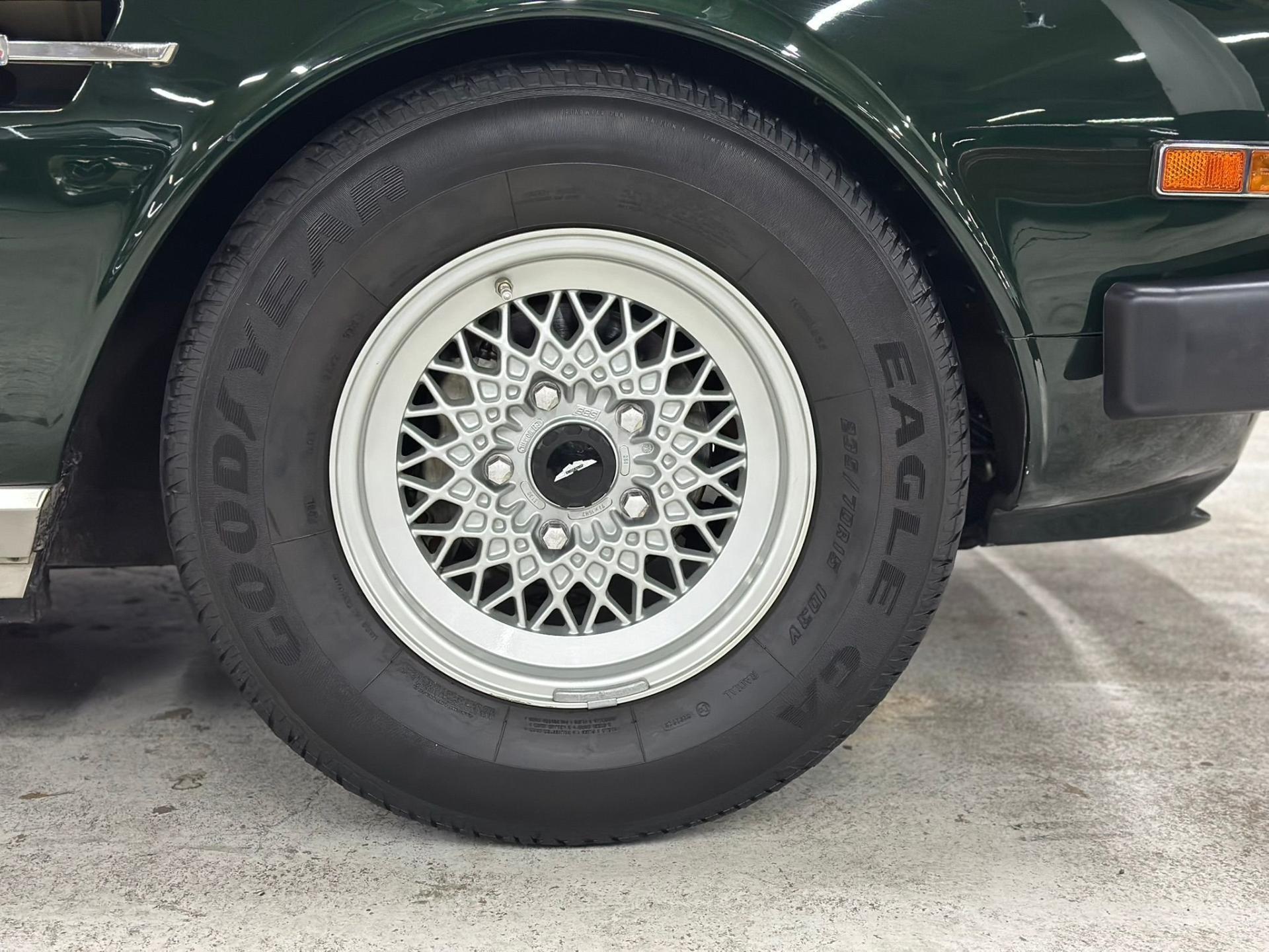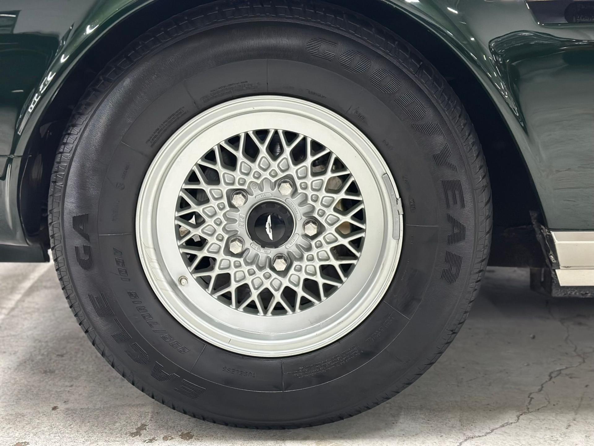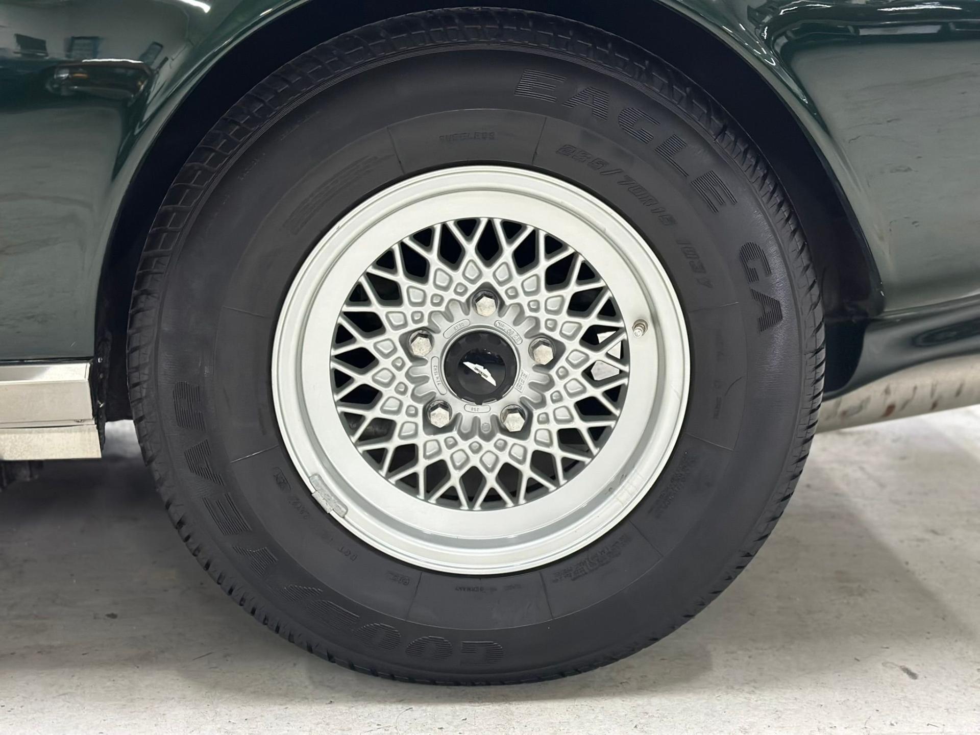 --British Racing Green with Tan leather interior piped in Green, Green Wilton Wool carpeting and Tan everflex convertible top, 23,000 miles from new, Fuel Injected 5.3 Liter V8 Engine, 3-Speed automatic transmission, POW front spoiler, PoW optional Nardi wood steering wheel and modern Bluetooth stereo head unit.