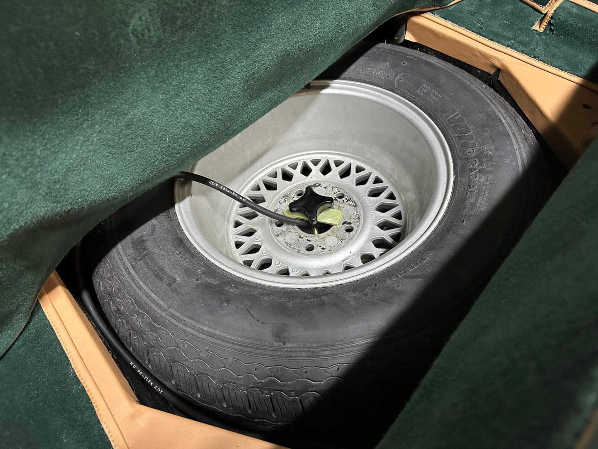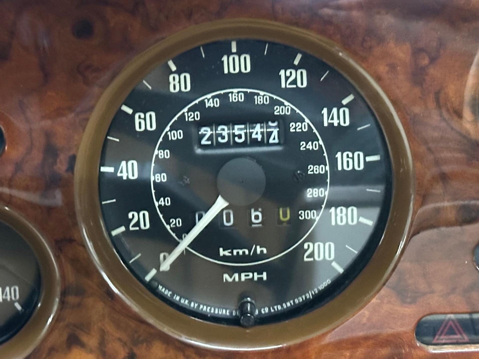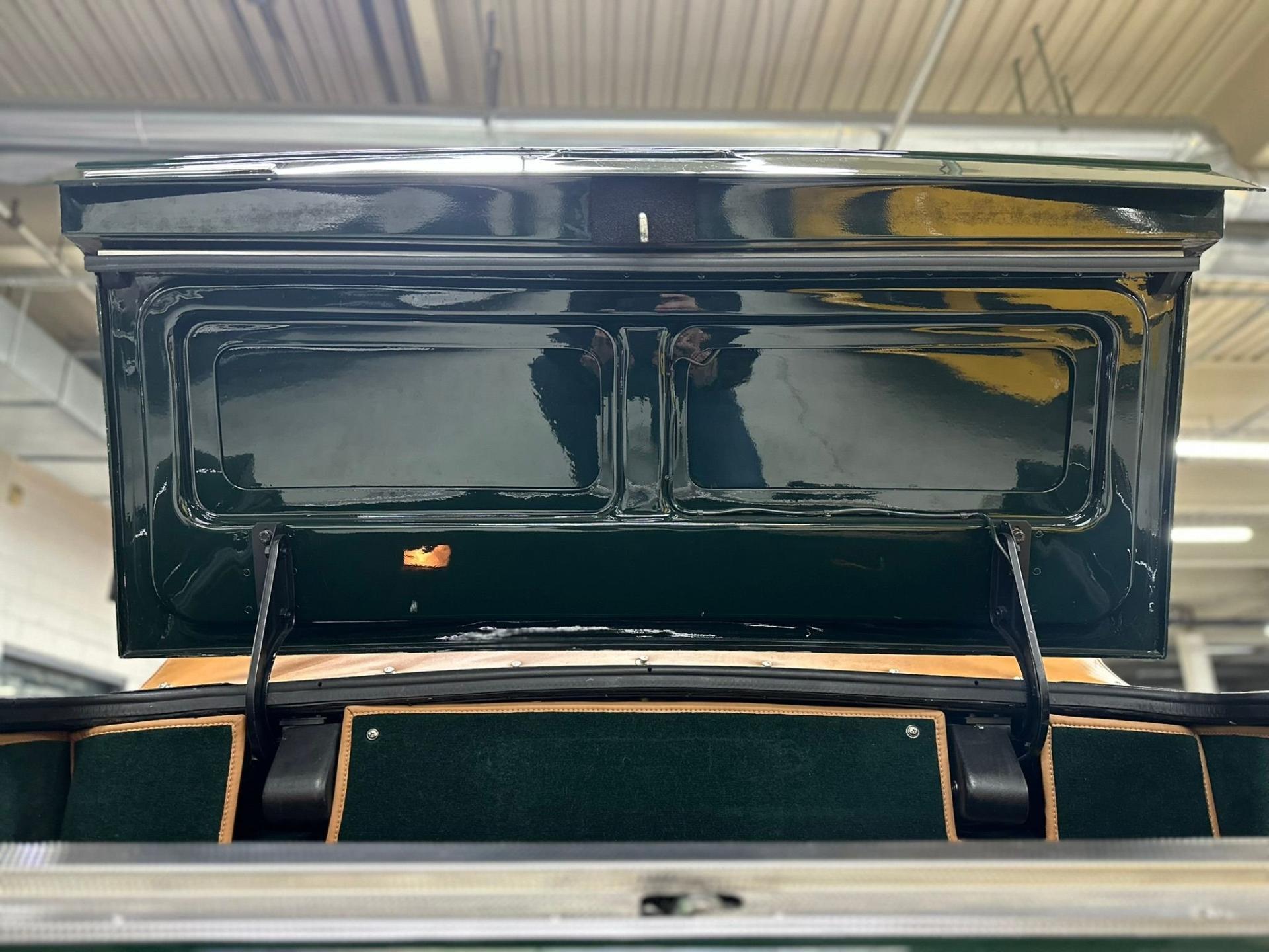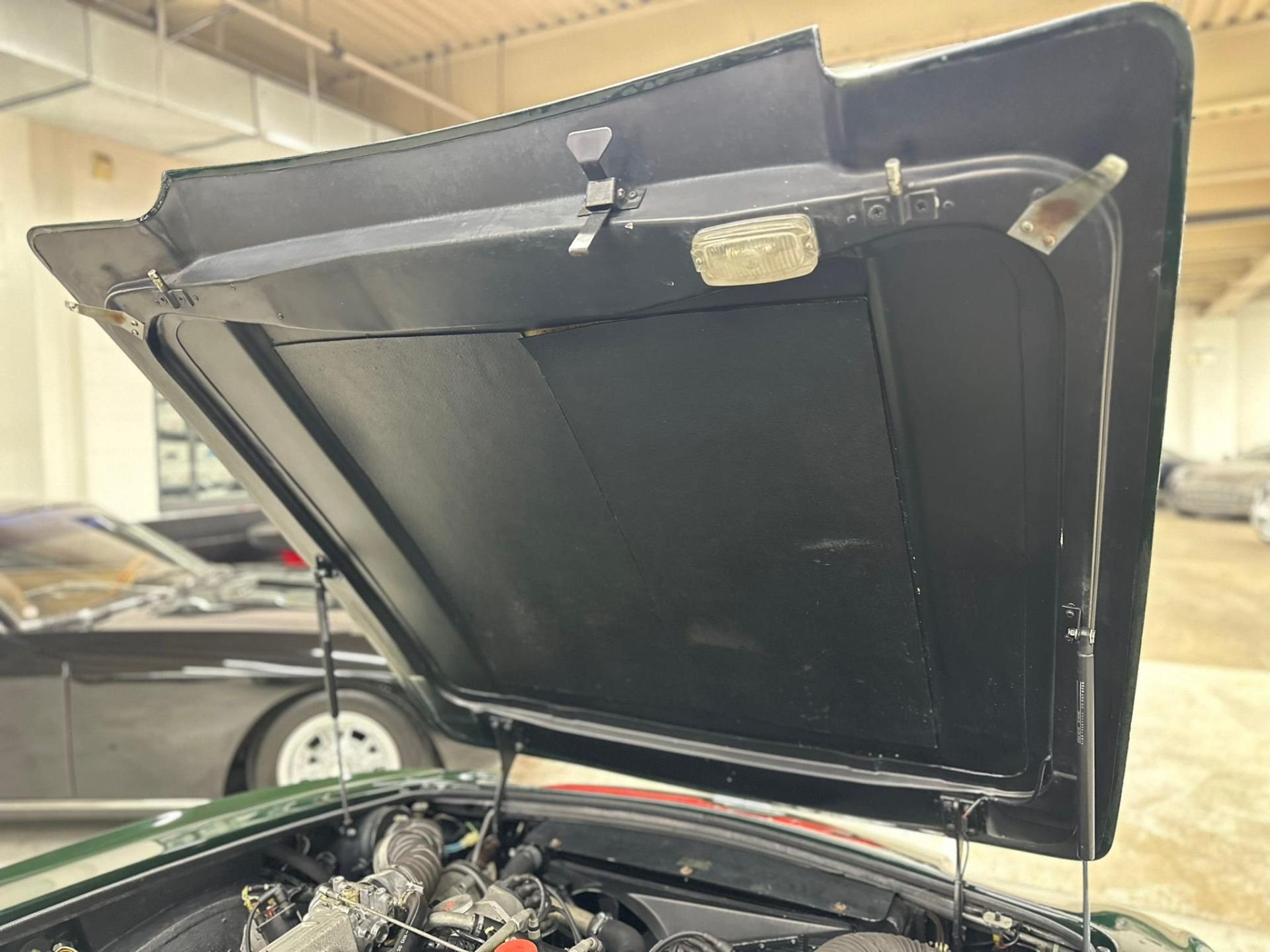 --British Racing Green with Tan leather interior piped in Green, Green Wilton Wool carpeting and Tan everflex convertible top, 23,000 miles from new, Fuel Injected 5.3 Liter V8 Engine, 3-Speed automatic transmission, POW front spoiler, PoW optional Nardi wood steering wheel and modern Bluetooth stereo head unit.