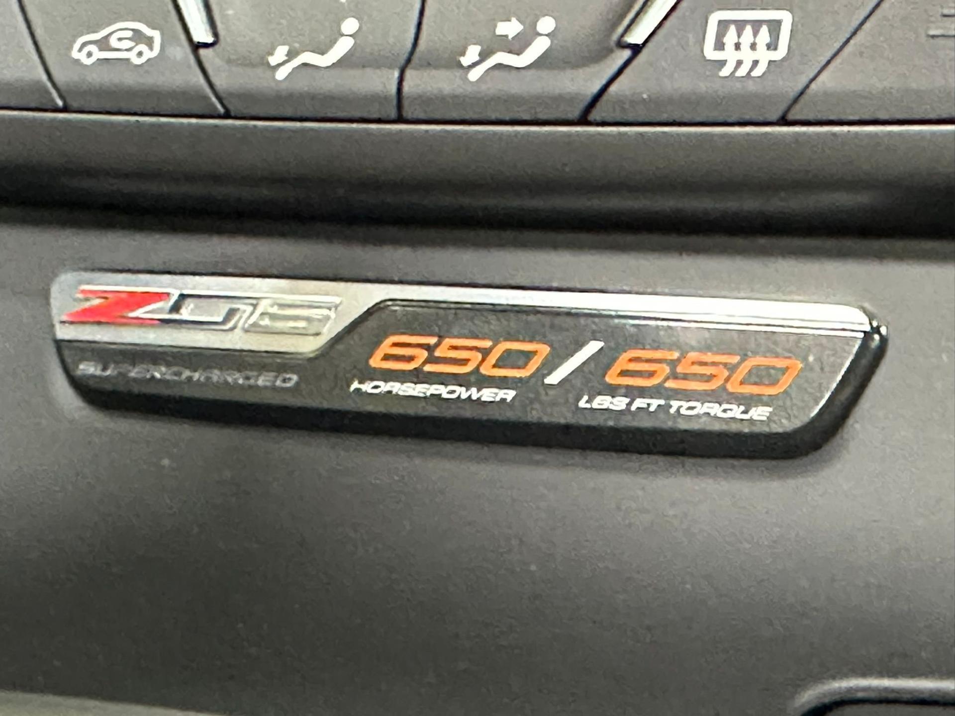 The power output is from a 6.2 liter LT4 Supercharged V8 engine producing 650 HP and 650 lb-ft of torque. Performance is 0-60 mph in 3.1 seconds with a top speed of 185 mph!