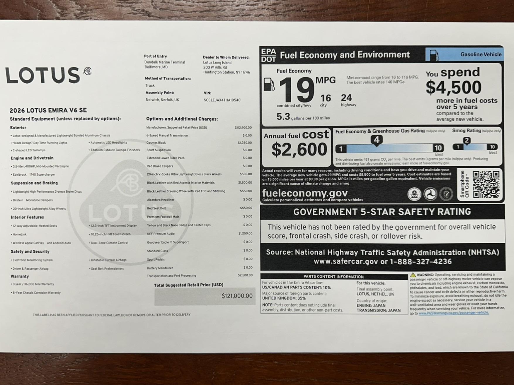 Factory Options Include: V6, Sport Suspension, Extended Lower Black pack, Black Leather Trimmed Steering Wheel With Red TDC and Stitching, Black Alcantara Headliner, Red Seat Belts, Premium Carpet Mats, Sport Pedals, 20"" V-Spoke Ultra Lightweight Gloss Black Wheels, Goodyear Eagle F1 SuperSport Tires, Yellow and Black Nose Badge and Center Caps, Red Brake Calipers, KEF Uni-Q Premium audio w/560 watts and wireless CarPlay for both Android and Apple, Battery Maintainer,12.3-inch TFT Instrument display, 0.25-inch HMI touchscreen, Reverse camera, Front and Rear Parking sensors, Cruise control, Power fold side view mirrors, LED automatic headlamps, High Beam Assist, Rear cross traffic alert, Door opening warning, Autonomous Emergency Braking (AEB), Traffic Sign Recognition, Blind Spot Warning, Lane Change Assist, Lane Departure Warning, Fatigue detection / warning, Adaptive Brake Assist, Automatic Brake Pre-fill, Automatic Warning Brake, Secondary Collision Mitigation, Hill Hold Control (HHC), Corner Brake Control (CBC), Corner Stability Control (CSC), Drag Torque Control (DTC), Vehicle Dynamic Control (VDC), Yaw Moment Control (YMC), Electronic Brake Force Distribution (EBD), Hydraulic Brake Assist (HBA), Integrated Vehicle Dynamics Control, Electronic parking brake, Integrated Traction Control and Dual zone climate control.