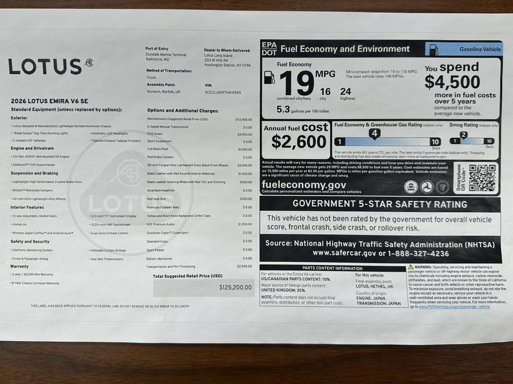Factory Options Include: V6, Sport Suspension, Full Black pack, Black Leather Trimmed Steering Wheel With Red TDC and Stitching, Black Alcantara Headliner, Red Seat Belts, Premium Carpet Mats, Sport Pedals, 20"" Forged Ultra Lightweight Gloss Black Prism Wheels, Goodyear Eagle F1 SuperSport Tires, Yellow and Black Nose Badge and Center Caps, Red Brake Calipers, KEF Uni-Q Premium audio w/560 watts and wireless CarPlay for both Android and Apple, Battery Maintainer,12.3-inch TFT Instrument display, 0.25-inch HMI touchscreen, Reverse camera, Front and Rear Parking sensors, Cruise control, Power fold side view mirrors, LED automatic headlamps, High Beam Assist, Rear cross traffic alert, Door opening warning, Autonomous Emergency Braking (AEB), Traffic Sign Recognition, Blind Spot Warning, Lane Change Assist, Lane Departure Warning, Fatigue detection / warning, Adaptive Brake Assist, Automatic Brake Pre-fill, Automatic Warning Brake, Secondary Collision Mitigation, Hill Hold Control (HHC), Corner Brake Control (CBC), Corner Stability Control (CSC), Drag Torque Control (DTC), Vehicle Dynamic Control (VDC), Yaw Moment Control (YMC), Electronic Brake Force Distribution (EBD), Hydraulic Brake Assist (HBA), Integrated Vehicle Dynamics Control, Electronic parking brake, Integrated Traction Control and Dual zone climate control.